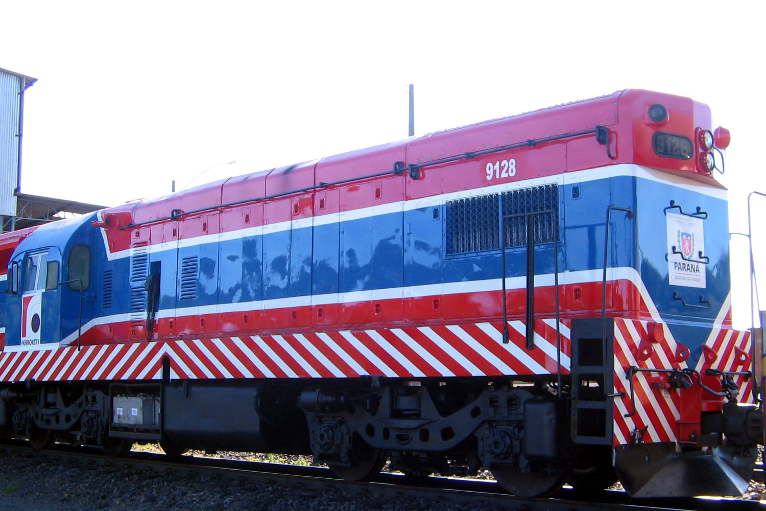 Máquina estréia pintura com novo leiaute de cor. A nova locomotiva 9128, que foi completamente restaurada pelos técnicos da Ferroeste, no terminal de Guarapuava, também foi pintada conforme o novo leiaute que a empresa está adotando para suas máquinas de tração.