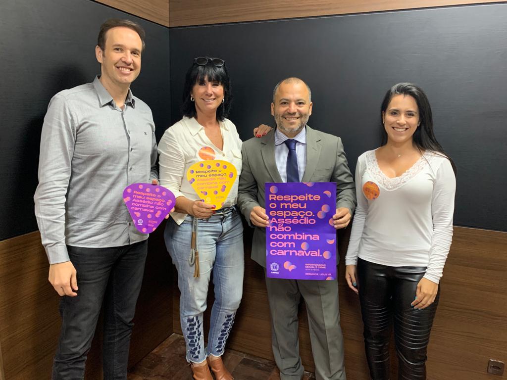 “Esta é uma ótima ação de conscientização e é importante fazermos parte dessa corrente”, disse Fábio Aguayo. A campanha prevê repasse, aos bares, restaurantes e casas noturnas, de leques, adesivos e folhetos com o tema “Respeite o meu espaço, assédio não combina com Carnaval” para serem distribuídos aos frequentadores.