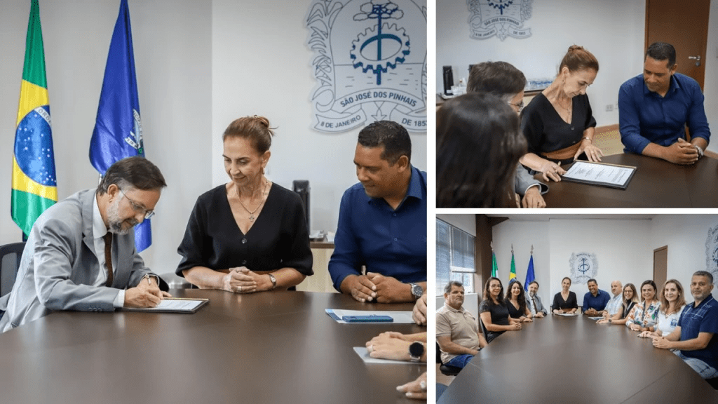 O vice-presidente da FIEP, Marcos Dybas da Natividade, foi recebido pela prefeita de São José dos Pinhais, Nina Singer (PSD), na tarde desta quinta-feira (14/3), para solenidade de assinatura de uma parceria entre o SENAI Paraná e a prefeitura da cidade.