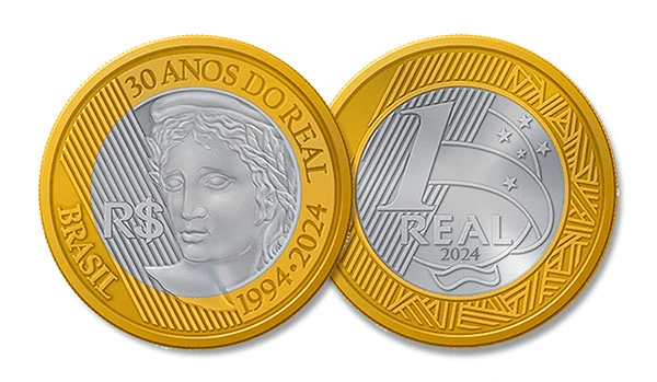 O Banco Central (BC) lançou a moeda de 1 real em comemoração ao trigésimo aniversário do Real. Ao todo, 45 milhões de moedas alusivas à data serão distribuídas por meio da rede bancária.
