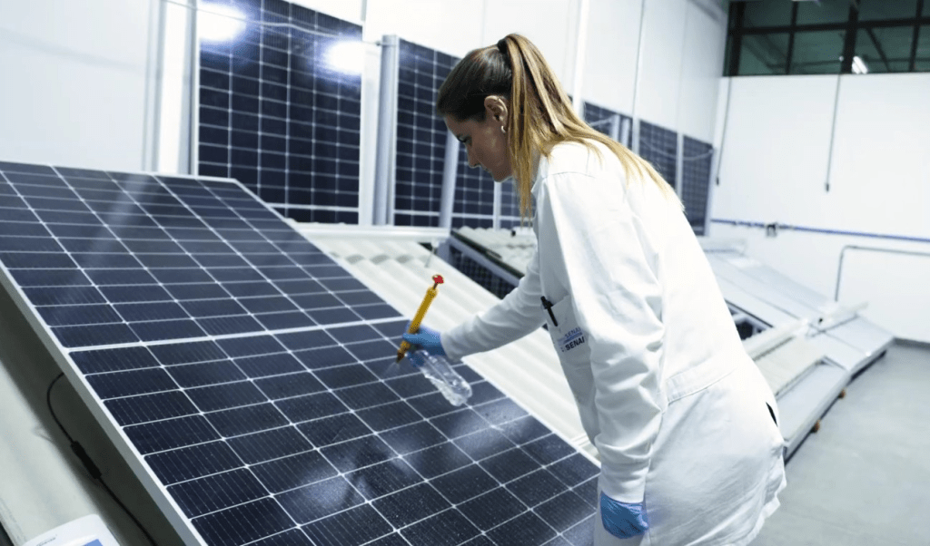 Uma parceria entre a Energy Trade e o Instituto Senai de Inovação em Eletroquímica (ISI-EQ) resultou no desenvolvimento de um revestimento inteligente com propriedades hidrofóbicas e de autolimpeza para painéis fotovoltaicos. A inovação busca enfrentar um dos principais desafios da geração solar: o acúmulo de sujeira que reduz a absorção da radiação e compromete a eficiência energética. Em determinadas regiões, essas perdas podem ultrapassar 30% da capacidade de geração.