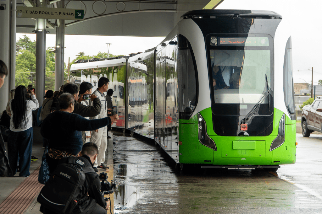 O clima dentro do veículo foi de surpresa e entusiasmo. Silêncio, estabilidade e a sensação de estar entrando em um meio de transporte do futuro foram as primeiras impressões de quem teve a chance de embarcar antes da abertura oficial. Fabricado pela empresa chinesa CRRC, o BUD combina características do VLT com o BRT, mas sem trilhos. Ele é guiado no asfalto por indução magnética, alcança até 70 km/h, tem 30 metros de comprimento, ar-condicionado e capacidade para 280 passageiros. A tarifa será a mesma do transporte metropolitano: R$ 5,50.